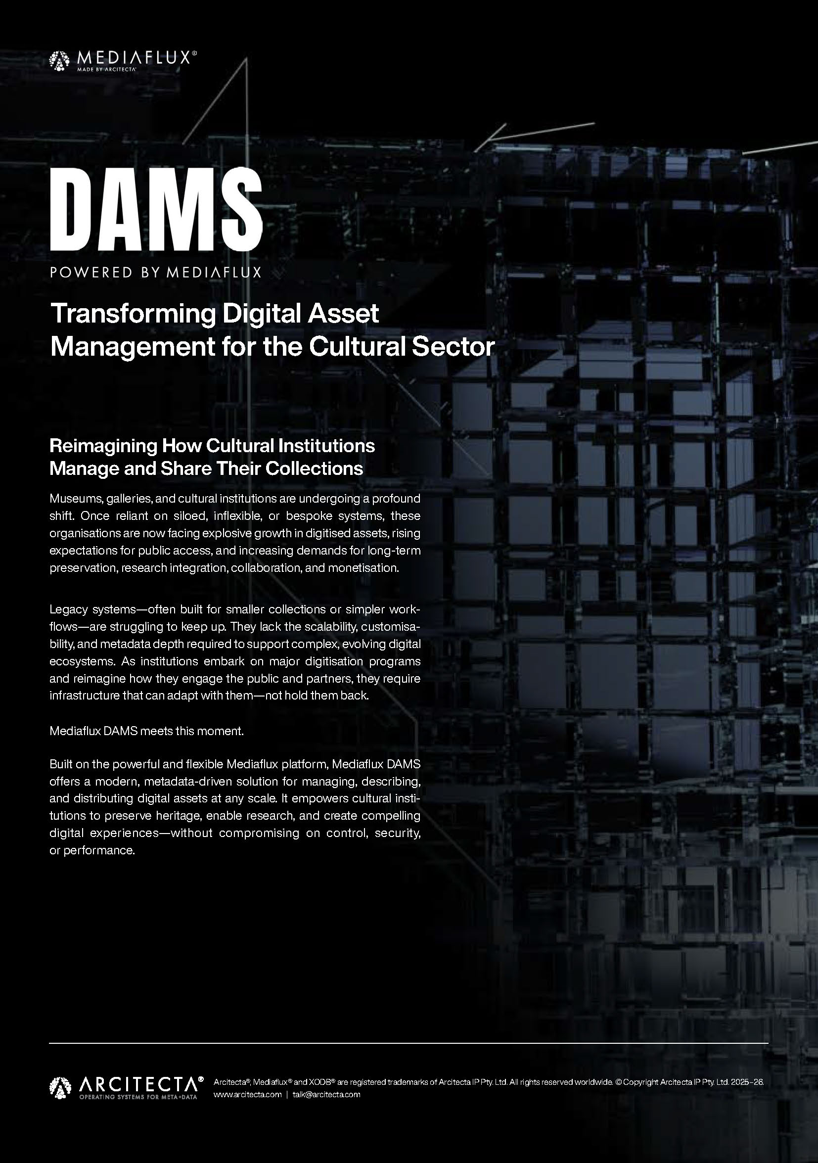 Arcitecta is a global leader in data management and orchestration, with more than 25 years of experience designing and delivering infrastructure that supports some of the world’s most complex data environments across cultural institutions, research infrastructure, government, and industry.